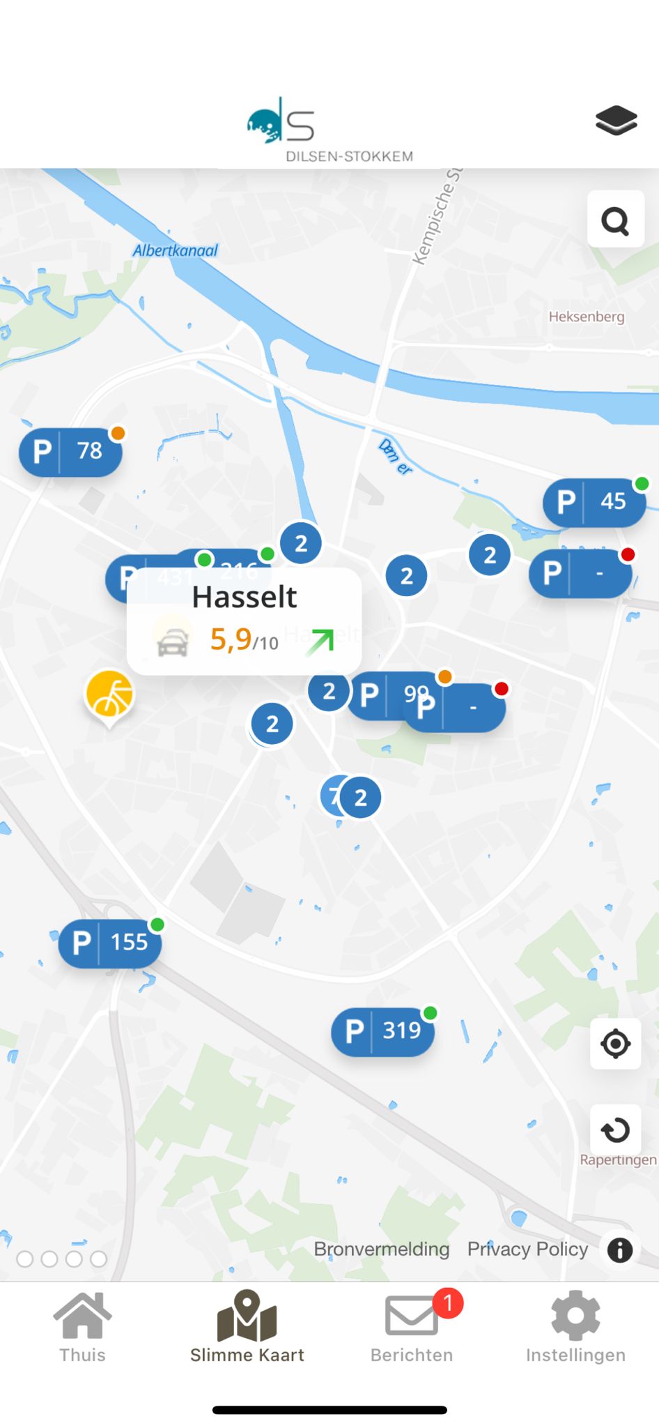 Plan je vertrek met De Slimme Kaart: is er parkeerplek op straat, wat is de bezettingsgraad van parkings, waar kan je je fiets neerzetten en hoe druk is de weg ernaartoe? Dit lees je allemaal af op de kaart. Heb je je parkeerplek in het centrum gevonden? Dan krijg je met één klik de snelste route er naartoe.