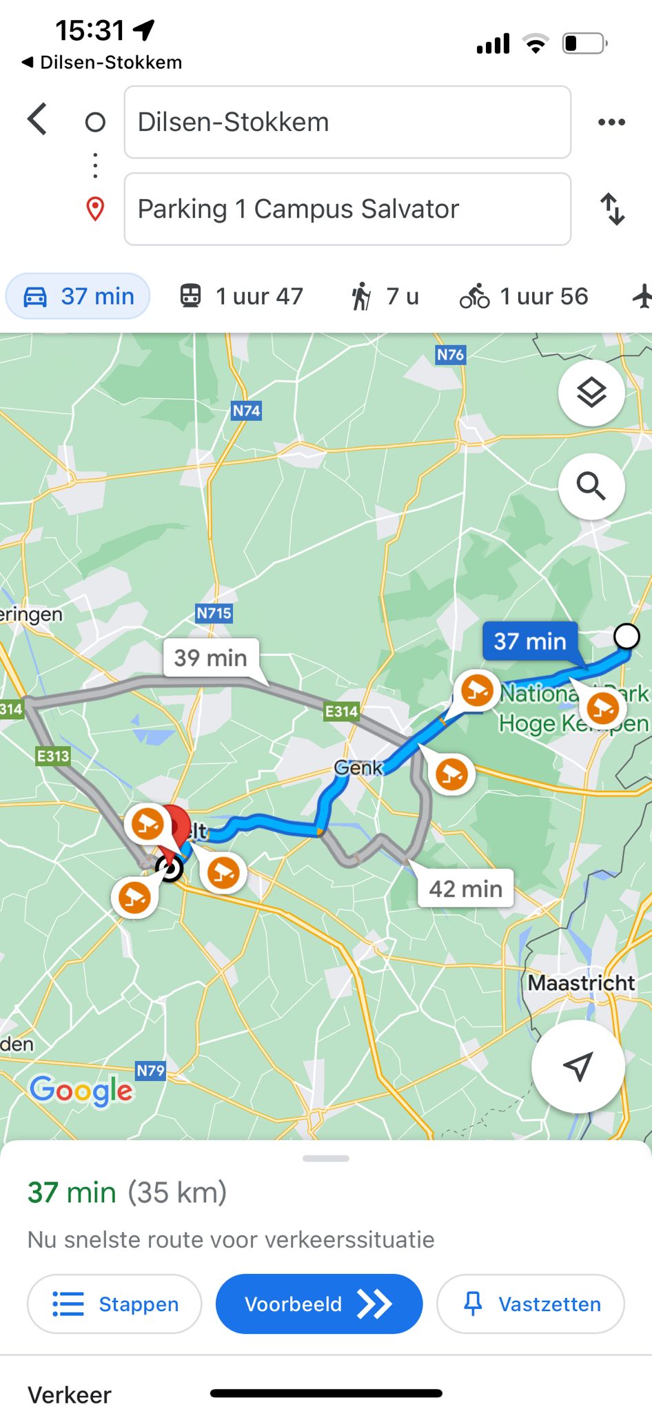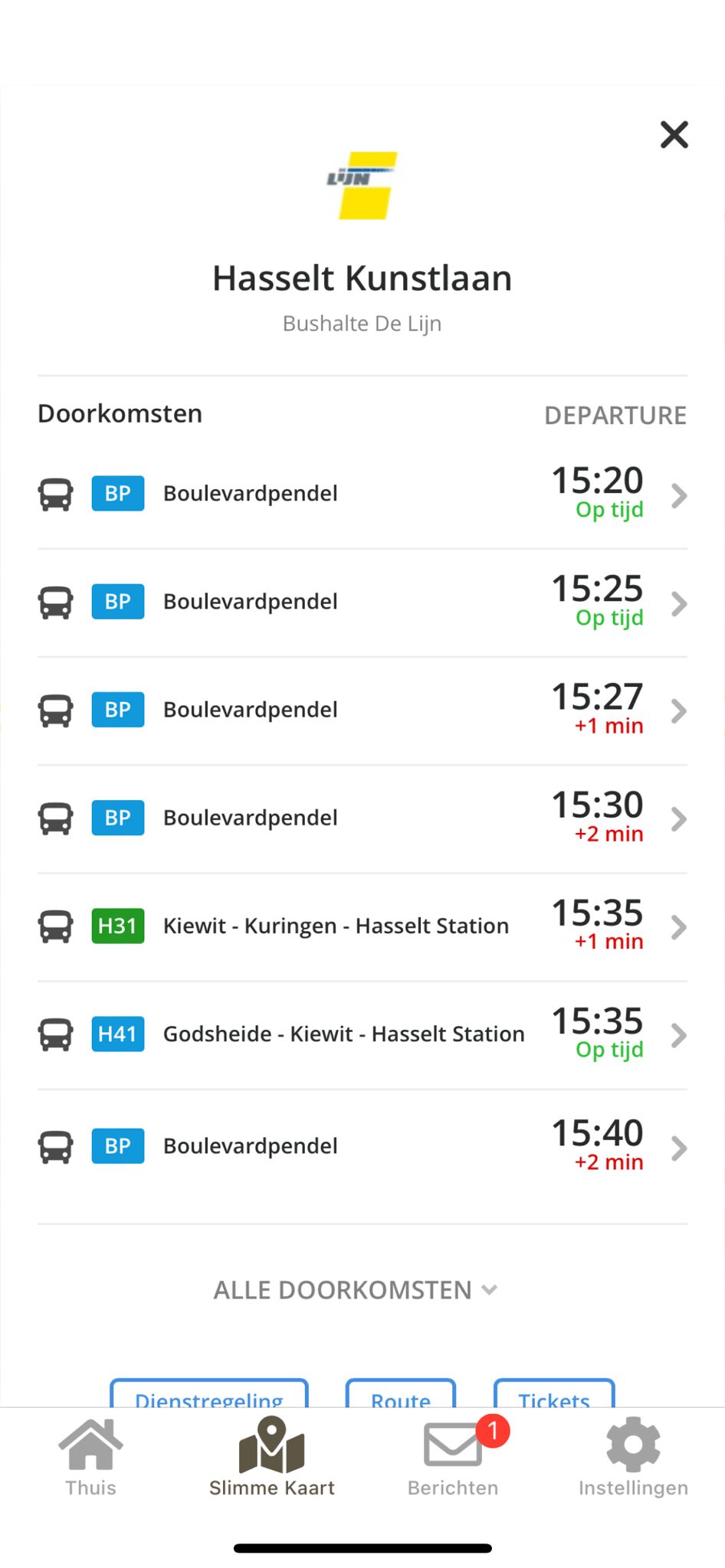 Alle bushaltes van de regio staan op De Slimme Kaart. Tik op de halte waar je wil opstappen en je ziet realtime doorkomsten van alle bussen. Je weet meteen ook hoe druk het is op de bus. Dat is een unieke functie voor navigatie-apps.